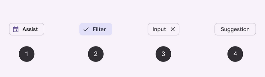 | Assist Chip | 액션을 보조하는 버튼 형태 | "주소 검색" 버튼 |
